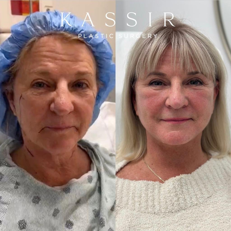 We performed a Revision Deep Plane Face & Neck Lift and CO2 Laser Resurfacing for our amazing 69 year old female patient in order to restore her youthful look and bring back her confidence. This procedure involves releasing the retaining ligaments and repositioning the muscles in the face and neck (SMAS & platysma vertically), creating a much better chin-neck angle and lifting the previously flat and droopy midface. With minimal bruising and swelling, our patient achieved an incredible transformation in only one month!